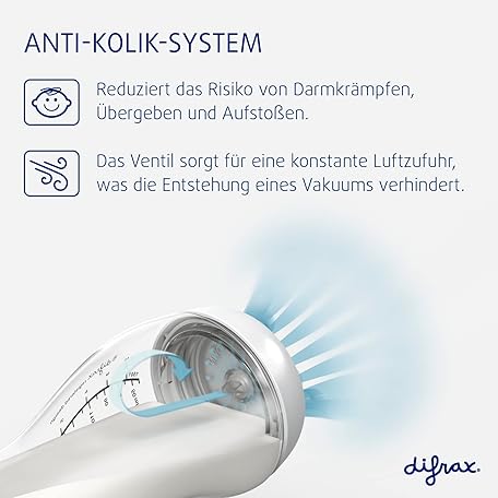 Thông tin sản phẩm Difrax Anti-Colic Glass Baby Bottles, Newborn Baby Bottle, Baby Bottle 0-6 Months, Good Acceptance - 310 ml White, BPA-Free, Developed in Collaboration with Medical Experts