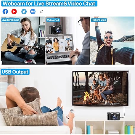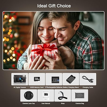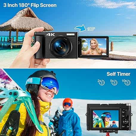Thông tin sản phẩm Digital Camera 4K, 48MP 16X Auto Focus Digital Zoom Camera, 3 Inch 180° Foldable LCD Screen, HD Compact Vlog Camera with Charging Station, 2 x 800 mAh Batteries, 32GB Card, Suitable for Beginners