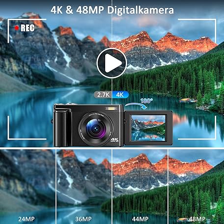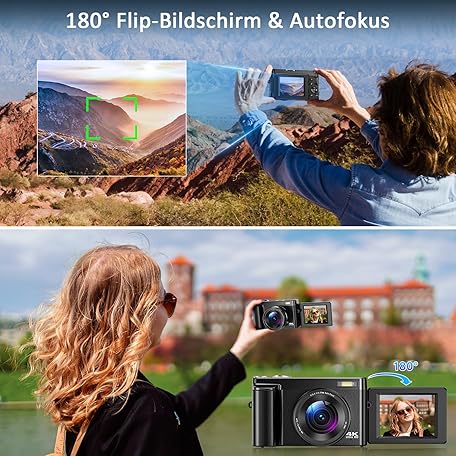 Sản phẩm Digital Camera 4K 48MP Autofocus Camera with 3 Inch 180° Folding Screen, 4K Compact Digital Cameras with 32GB Card, 16X Digital Zoom, 2 Batteries for Beginners, Teenagers đang được bán với giá ưu đãi là $112.0193 tại nước Đức.
