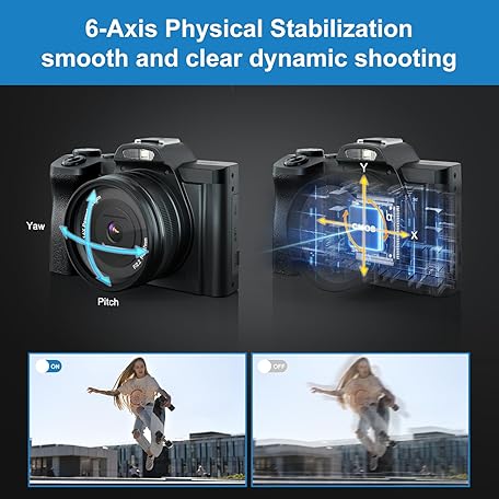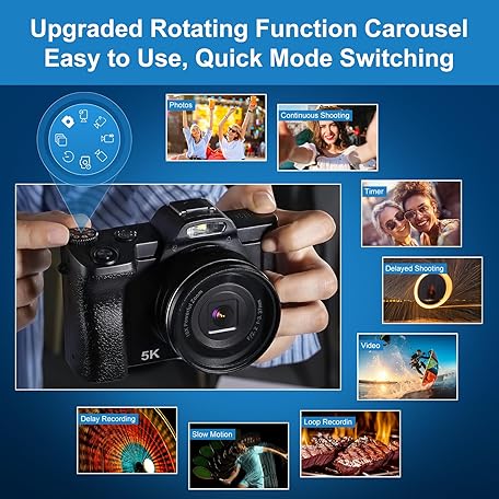 Thông tin sản phẩm Digital Camera 5K, 48MP 16X Digital Zoom Photo Camera with 32G SD Card, Auto Focus WiFi Compact Camera, 6 Axis Stabilisation Travel Camera with UV Filter and 2 Batteries for Beginners, Children,