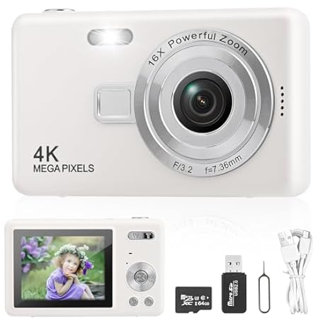 Thông tin sản phẩm Digital Camera with 32GB Card, Portable Camera, HD 1080P Photo Camera, Compact Camera, 40MP Camera, 8X Digital Zoom Digital Camera for Teenagers, Beginners (White)