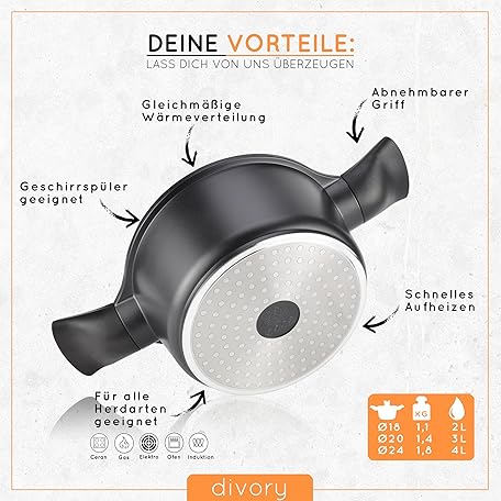 Thông tin sản phẩm DIVORY Cooking Pot 24 cm with Lid - Removable Handle, Suitable for Induction Cookers and Non-Stick Coating - Meat Pot (Pot, 24 cm)