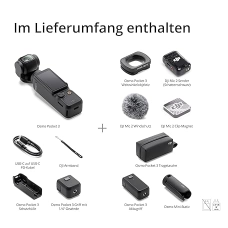 Thông tin sản phẩm DJI Osmo Pocket 3 Creative Combo, Vlog Camera 4K with 1 Inch CMOS and 4K/120 fps Video, 3-Axis Stabilisation, Digital Camera, Fast Focusing, incl. Microphone for Clear Sound, YouTube