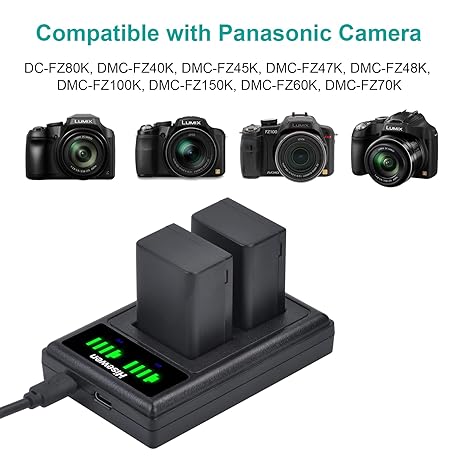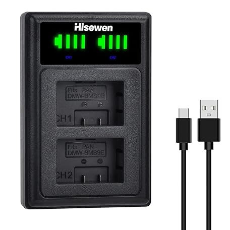 Thông tin sản phẩm DMW-BMB9 Battery Charger, Hisewen LED Double Charger for Panasonic Lumix FZ82, DMC-FZ80, DMC-FZ100, DMC-FZ150, DMC-FZ72, DMC-FZ70, DMC-FZ62, DMC-FZ60, DMC-FZ48&Leica V-Lux2, V-Lux3 Camera
