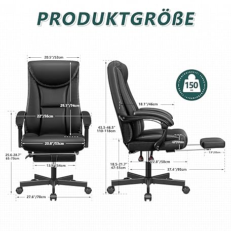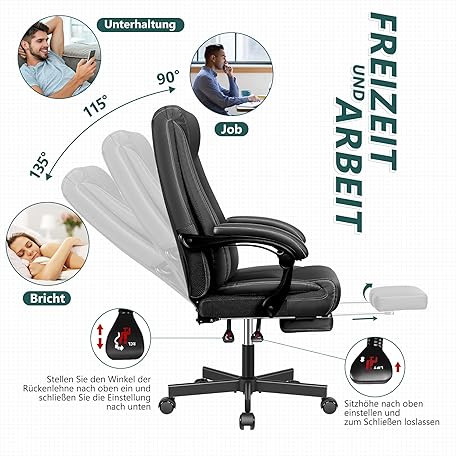 Thông tin sản phẩm DoChair Executive Chair, Wide Office Chair, Ergonomic Desk Chair, High Backrest, 150 kg with Footrest, Office Chair Made of PU Leather,