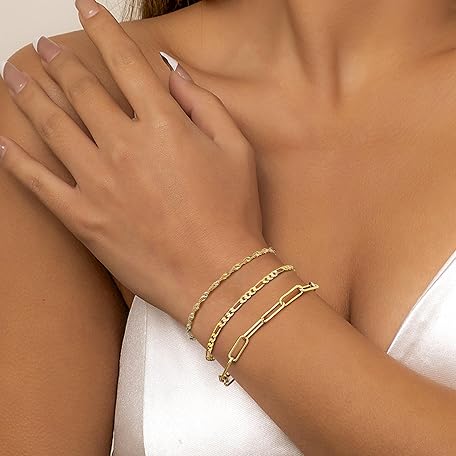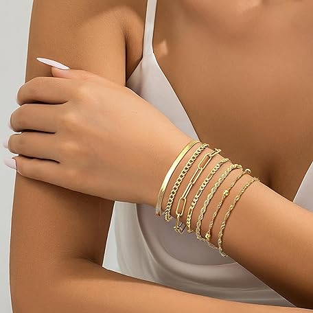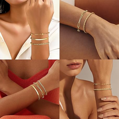 Thông tin sản phẩm Dochais 5-7 pieces gold bracelets women's bracelet, 18 carat gold-plated bracelet women, cubic zirconia gold bracelet, ladies, chain bracelet set, fashion jewellery for women and girls