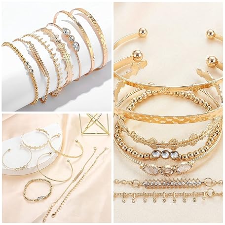 Thông tin sản phẩm Dochais Boho Gold Bracelets Set, Layered Bracelet, Adjustable, Stackable Bracelets, Women's Gold, Bohemian Multilayer Bracelet for Women, Girls, Pack of 30, Gold-plated alloy