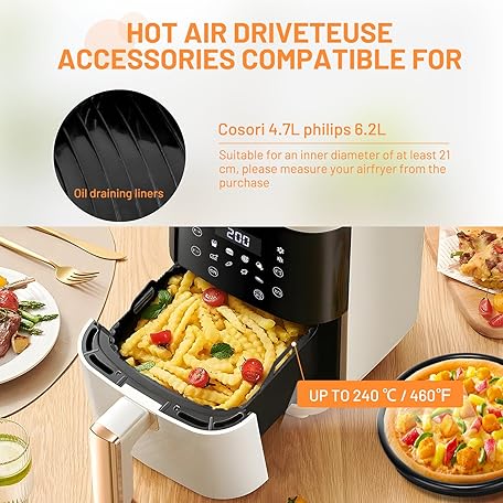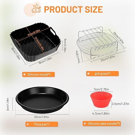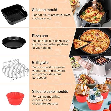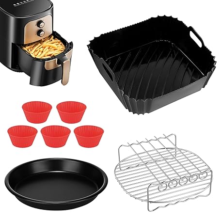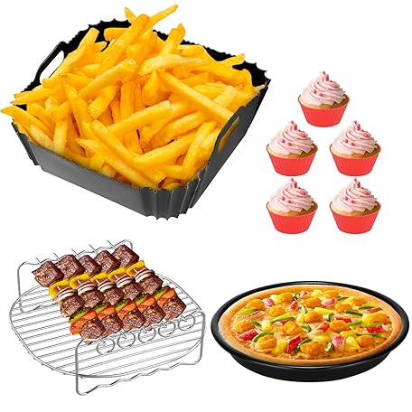 Thông tin sản phẩm Domisyee Pack of 4 Airfryer Accessories 21 cm Hot Air Fryer Compatible with Cosori 5.5 L/6.4 L, Philips Airfryer XL 6.2 L/7.3 L, Cecotec 5.5 L/6 L, Princess 5.2 L/6.5 L, Innsky 6L Air Ffryer