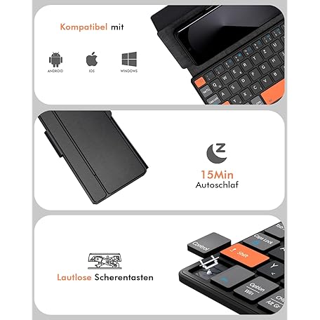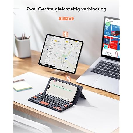 Sản phẩm Doohoeek Dual Bluetooth Keyboard for Mobile Phone, Mini Portable Wireless Keyboard for iPhone, iPad Mini, Samsung Z Fold, Wireless Foldable Keyboard with Stand for iOS, Android and Windows, Orange đang được bán với giá ưu đãi là $31.4247 tại nước Đức.