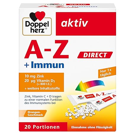 Sản phẩm Doppelherz A-Z + Immune Direct - With Zinc, Vitamin B12, Vitamin C and D as a Contribution to the Normal Function of the Immune System - Liquid, 20 Sachets đang được bán với giá ưu đãi là $6.0168 tại nước Đức.