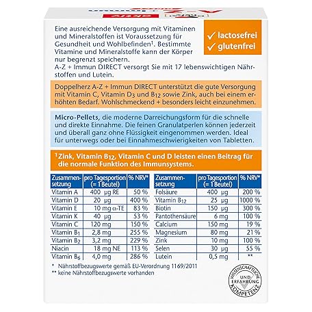 Thông tin sản phẩm Doppelherz A-Z + Immune Direct - With Zinc, Vitamin B12, Vitamin C and D as a Contribution to the Normal Function of the Immune System - Liquid, 20 Sachets
