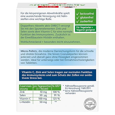 Sản phẩm Doppelherz Active Direct with Orange Flavour - Dietary Supplement with Zinc, Selenium & Vitamin C to Support the Immune System - Plus Histidin - 20 Portions (20 x Micro Pellets) đang được bán với giá ưu đãi là $4.6761 tại nước Đức.