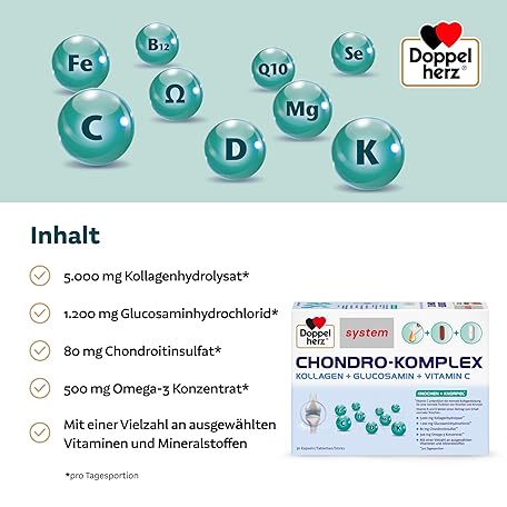 Thương hiệu Doppelherz là cái tên nổi tiếng được rất nhiều khách hàng trên thế giới chọn lựa. Với kiểu dáng đẹp mắt, sang trọng, sản phẩm Doppelherz Chondro Complex System - With Collagen, Glucosamine, Vitamin C and Other Selected Vitamins and Minerals - 30 Capsules + 30 Tablets + 30 Liquid Sticks là sự lựa chọn hoàn hảo nếu bạn đang tìm mua một món cho riêng mình.