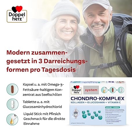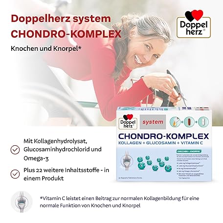 Thông tin sản phẩm Doppelherz Chondro Complex System - With Collagen, Glucosamine, Vitamin C and Other Selected Vitamins and Minerals - 30 Capsules + 30 Tablets + 30 Liquid Sticks