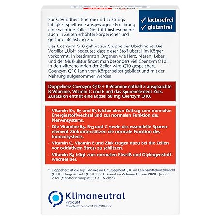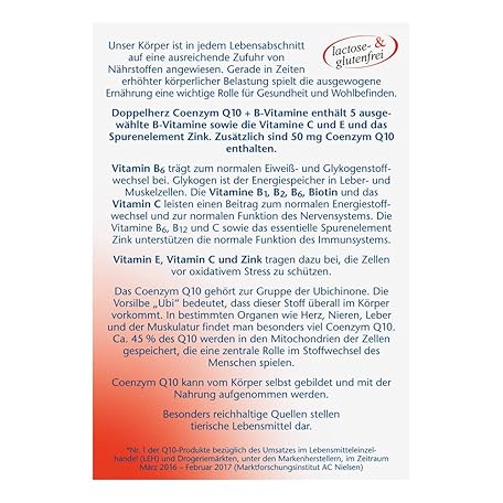 Thông tin sản phẩm Doppelherz Coenzyme Q10 + B Vitamins - with Zinc, Vitamin B6, B12 and C as a Contribution to the Normal Function of the Immune System - 30 Capsules (Pack of 4)