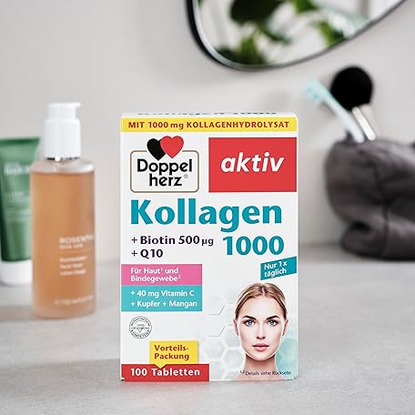 Sản phẩm Doppelherz Collagen 1000 + Biotin + Q10 - Manganese and Copper Contribute to Normal Connective Tissue Formation - 100 Tablets đang được bán với giá ưu đãi là $18.0068 tại nước Đức.
