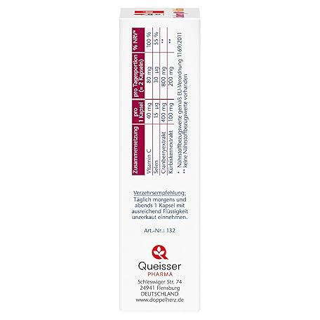 Sản phẩm Doppelherz Cranberry, Pumpkin, Vitamin C & Selenium, 30 cap đang được bán với giá ưu đãi là $5.995 tại nước Đức.