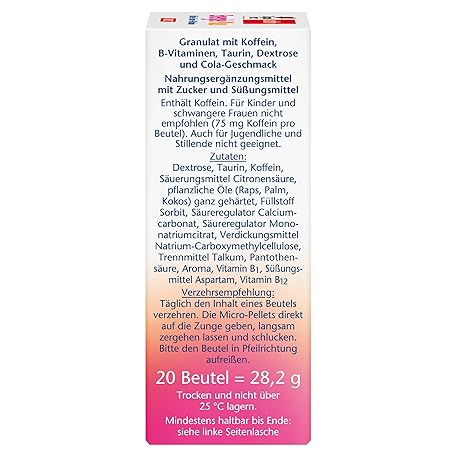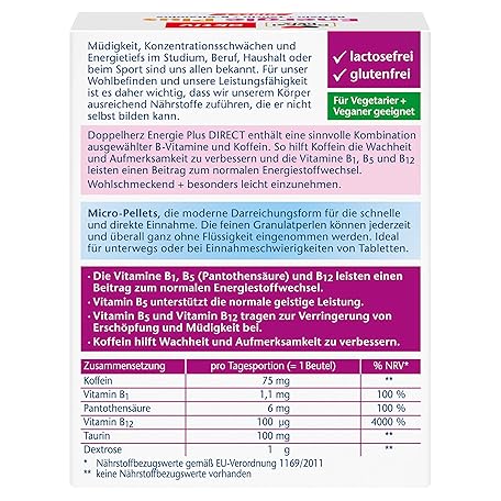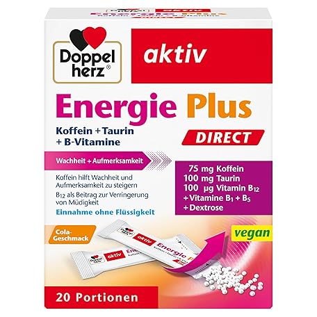 Sản phẩm Doppelherz Energy Plus Caffeine + Taurine + B Vitamins Direct - With Vitamin B1, B5 (Pantothenic Acid) and B12 as a Contribution to Energy Metabolism - 20 Portion Bags đang được bán với giá ưu đãi là $5.0576 tại nước Đức.
