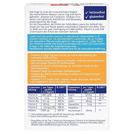 Sản phẩm Doppelherz Eyes Extra Day + Night - With Lutein, Zeaxanthin - 5 Vitamins Plus Folic Acid - 30 Capsules đang được bán với giá ưu đãi là $5.9732 tại nước Đức.