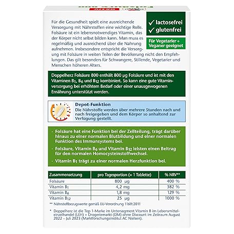Sản phẩm Doppelherz Folic Acid 800 Depot - With Vitamin C + B Vitamins to Support the Normal Function of the Immune System - Vegan - 60 Mini Tablets đang được bán với giá ưu đãi là $5.7443 tại nước Đức.