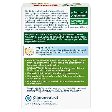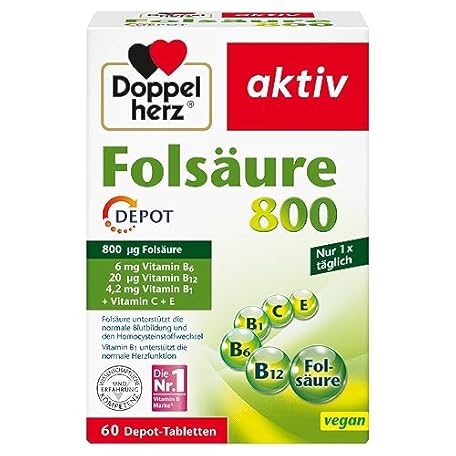 Sản phẩm Doppelherz Folic Acid 800 - With Vitamin C, B6 and B12 to Support the Normal Function of the Immune System - 60 DEPOT Tablets đang được bán với giá ưu đãi là $10.1479 tại nước Đức.