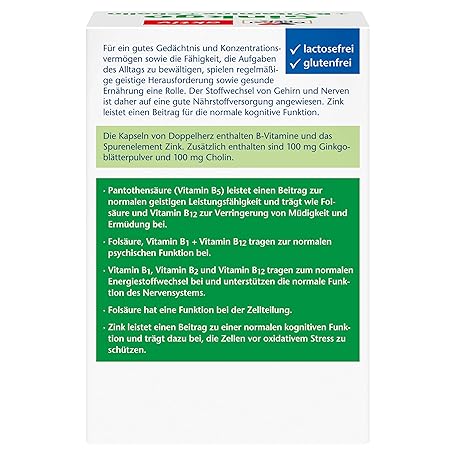 Sản phẩm Doppelherz Ginkgo + B Vitamins + Choline - With Pantothenic Acid as a Contribution to Normal Mental Performance - 120 Capsules đang được bán với giá ưu đãi là $19.9143 tại nước Đức.
