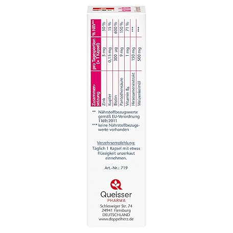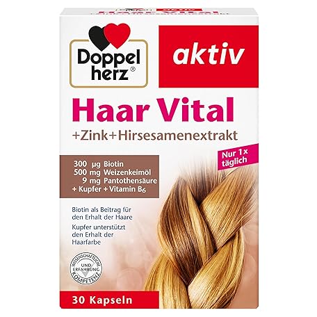 Sản phẩm Doppelherz Hair Vital + Zinc + Millet Seed Extract - with Biotin as a Contribution to the Preservation of Hair - Copper Supports the Preservation of Hair Colour - 30 Capsules đang được bán với giá ưu đãi là $7.3248 tại nước Đức.