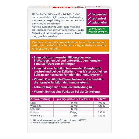 Sản phẩm Doppelherz Iron + Vit.C + L-Histidine Tablets đang được bán với giá ưu đãi là $11.3687 tại nước Đức.