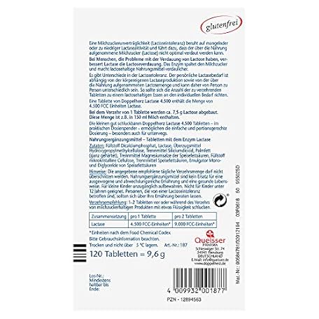 Sản phẩm Doppelherz Lactase 4,500 - for lactose intolerance - lactase improves lactose digestion - 120 tablets in a practical click dispenser (pack of 2) đang được bán với giá ưu đãi là $25.1463 tại nước Đức.