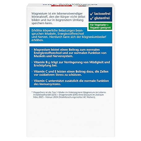 Sản phẩm Doppelherz Magnesium 400 + B12 + C + E - Magnesium Supports Muscles and Nervous System - 30 Vegan Tablets đang được bán với giá ưu đãi là $5.0358 tại nước Đức.