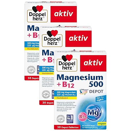 Doppelherz Magnesium 500 + B12 2-Phase - High Dose with 500 mg Magnesium Per Depot Tablet - 30 Tablets (Pack of 3)