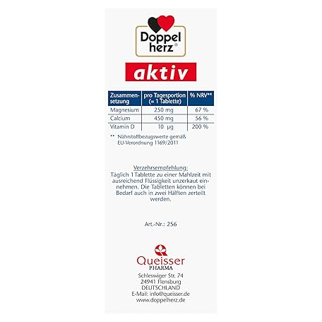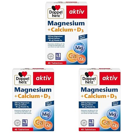 Doppelherz Magnesium + Calcium + D3 - Magnesium as a Contribution to Normal Muscle Function and Maintain Normal Bones - 40 Tablets (Pack of 3)