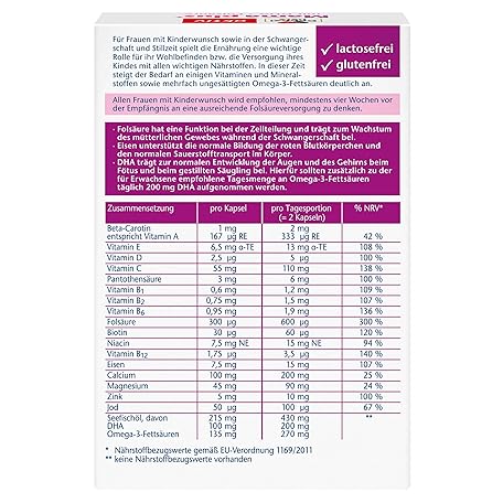 Thông tin sản phẩm Doppelherz Mama plus Capsules, Folic Acid Supplement to Support Cell Division During Pregnancy, 30 Capsules