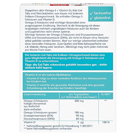 Thương hiệu Doppelherz là cái tên nổi tiếng được rất nhiều khách hàng trên thế giới chọn lựa. Với kiểu dáng đẹp mắt, sang trọng, sản phẩm Doppelherz Omega-3 + D3 Kids - Vitamin D wird für ein gesundes Wachstum & eine gesunde Entwicklung der Knochen bei Kindern benötigt - 27 Gel-Tabs là sự lựa chọn hoàn hảo nếu bạn đang tìm mua một món cho riêng mình.