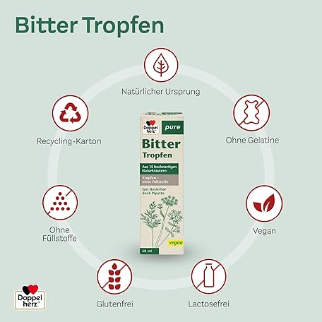 Sản phẩm Doppelherz Pure Bitter Drops - Vegan + Easy Application - Formula with 15 Selected Bitter Herbs and Roots - 50 ml đang được bán với giá ưu đãi là $12.5459 tại nước Đức.