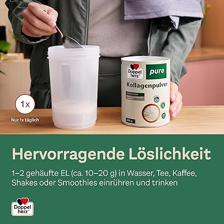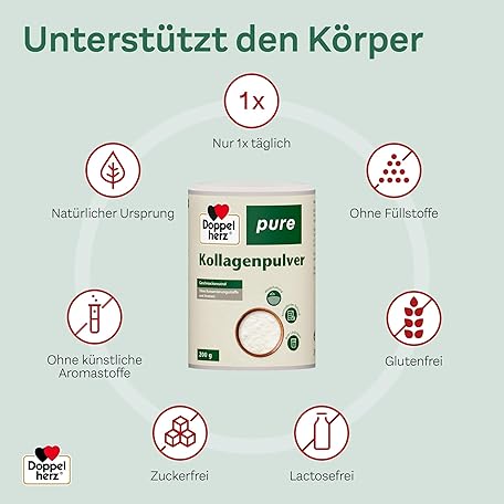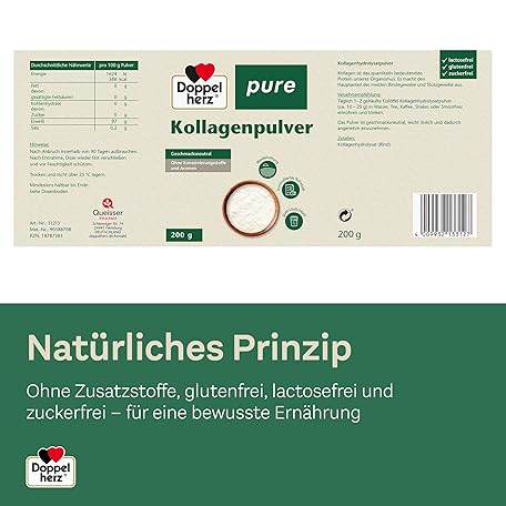 Sản phẩm Doppelherz Pure Collagen Powder, Tasteless, Easily Soluble, No Preservatives and Flavours, Controlled Raw Material from Pasture Farming, 200 g đang được bán với giá ưu đãi là $12.9274 tại nước Đức.