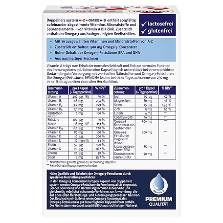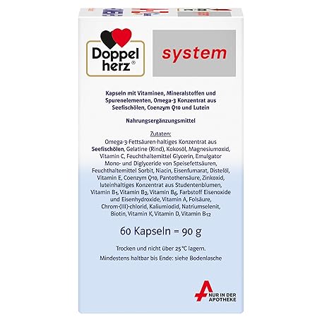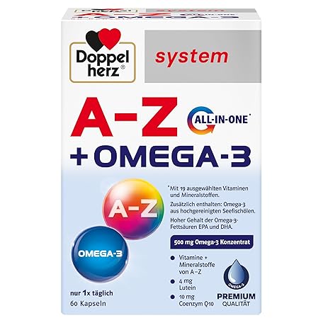 Sản phẩm Doppelherz System A-Z + Omega-3 All-in-One - 19 Vitamins and Minerals Plus Omega-3 - 60 Capsules đang được bán với giá ưu đãi là $26.0837 tại nước Đức.