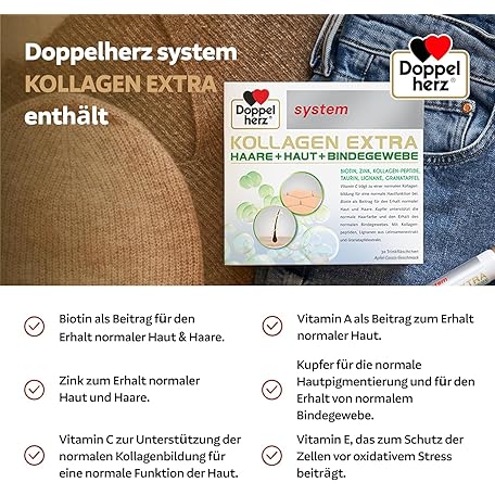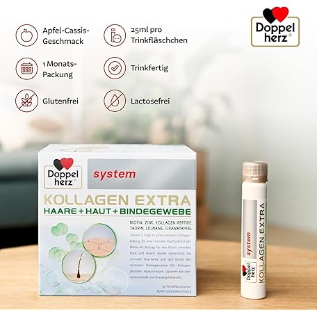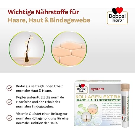 Sản phẩm Doppelherz System Collagen Extra - With Biotin as a Contribution to the Maintenance of Normal Skin & Hair - 30 Drinking Bottles đang được bán với giá ưu đãi là $59.6884 tại nước Đức.