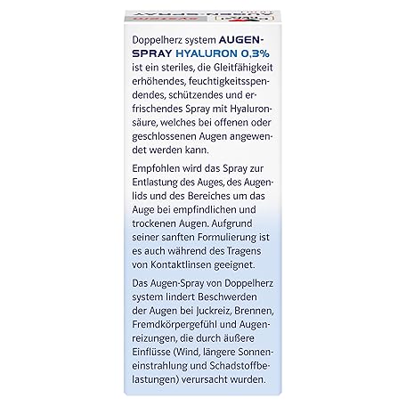 Sản phẩm Doppelherz System Eye Spray Hyaluronic 0.3% - Moisturises Dry and Irritated Eyes - 10 ml Sterile Solution đang được bán với giá ưu đãi là $14.9657 tại nước Đức.