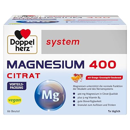 Doppelherz System Magnesium 400 Citrate - Magnesium as a Contribution to the Normal Function of Muscles and Nervous System - 60 Portion Bags