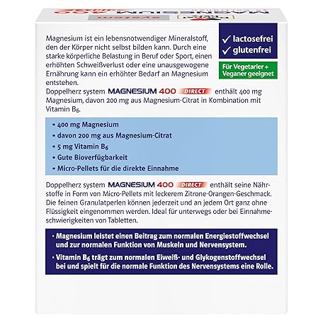 Sản phẩm Doppelherz System Magnesium 400 Direct – Magnesium as a Contribution to the Normal Function of Muscles and Nervous System – 30 Portion Bags đang được bán với giá ưu đãi là $19.5655 tại nước Đức.