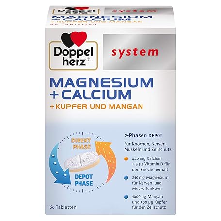 Sản phẩm Doppelherz System Magnesium + Calcium Depot - Magnesium as a Contribution to the Normal Function of Muscles and Nerves - Depot Tablets with the 2-Phase Effect - 60 Tablets đang được bán với giá ưu đãi là $19.7508 tại nước Đức.