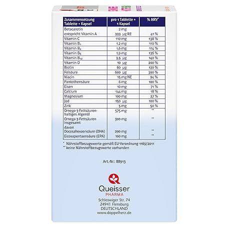Thương hiệu Doppelherz là cái tên nổi tiếng được rất nhiều khách hàng trên thế giới chọn lựa. Với kiểu dáng đẹp mắt, sang trọng, sản phẩm Doppelherz System Pregnant + Mothers Vegan - The Modern Folic Acid Nutrient Combination for Women with Desire to Child,Pregnant Women and Breastfeeding - 30 Tablets and 30 Capsules là sự lựa chọn hoàn hảo nếu bạn đang tìm mua một món cho riêng mình.