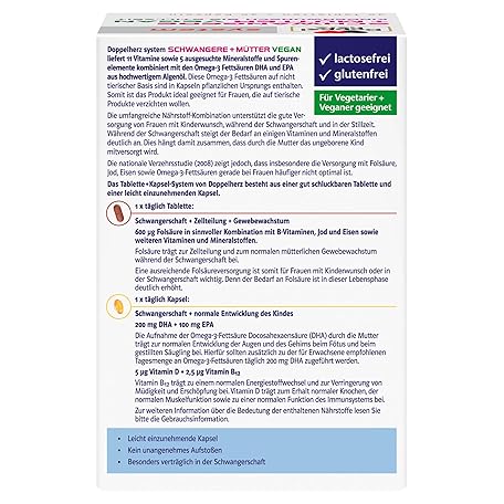 Sản phẩm Doppelherz System Pregnant + Mothers Vegan - The Modern Folic Acid Nutrient Combination for Women with Desire to Child,Pregnant Women and Breastfeeding - 30 Tablets and 30 Capsules đang được bán với giá ưu đãi là $28.3182 tại nước Đức.