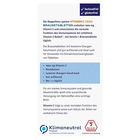 Sản phẩm Doppelherz System Vitamin C 1000 - Vitamin C contributes to normal functioning of the immune system - 40 effervescent tablets đang được bán với giá ưu đãi là $11.7611 tại nước Đức.