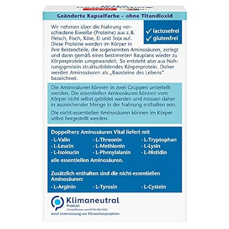 Thông tin sản phẩm Doppelherz Vital Amino Acids - 12 Protein Building Blocks, Including All 9 Essential Amino Acids, for Athletes and Physically Active - 30 Capsules (Pack of 2)
