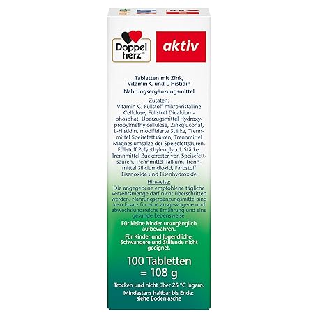 Thương hiệu Doppelherz là cái tên nổi tiếng được rất nhiều khách hàng trên thế giới chọn lựa. Với kiểu dáng đẹp mắt, sang trọng, sản phẩm Doppelherz Zinc 15 + Histidine + Vitamin C -15 mg Zinc as a Contribution to the Normal Function of the Immune System and for the Maintenance of Normal Skin - 100 Vegan Depot Tablets là sự lựa chọn hoàn hảo nếu bạn đang tìm mua một món cho riêng mình.