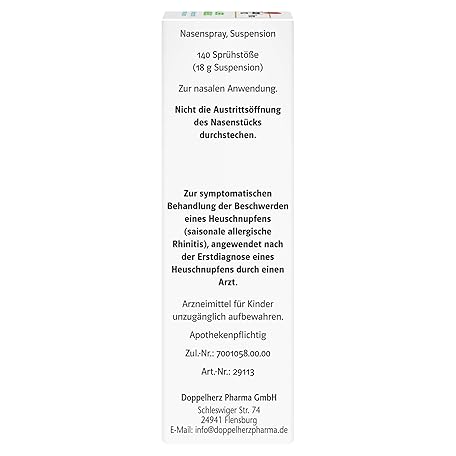 Sản phẩm DoppelherzPharma ALLERGO-MOMELIND Nasal Spray - Medicine for Use in Adults After Initial Diagnosis of Hay Fever by a Doctor - Approx. 140 Sprays đang được bán với giá ưu đãi là $17.7888 tại nước Đức.