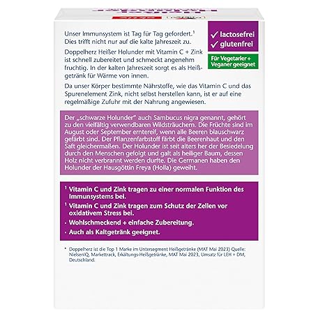 Sản phẩm Double Heart Hot Elderberry with Vitamin C and Zinc, Pack of 10) đang được bán với giá ưu đãi là $11.8483 tại nước Đức.