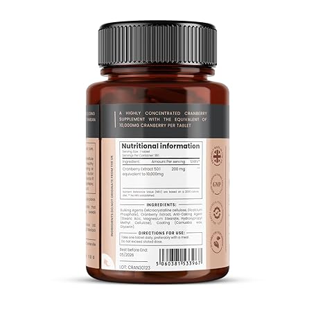 Thông tin sản phẩm Double Strength Cranberry Extract, 10,000 mg x 360 Ultra Concentrated Tablets (2 Bottles of 180 Tablets - 12 Months Supply)